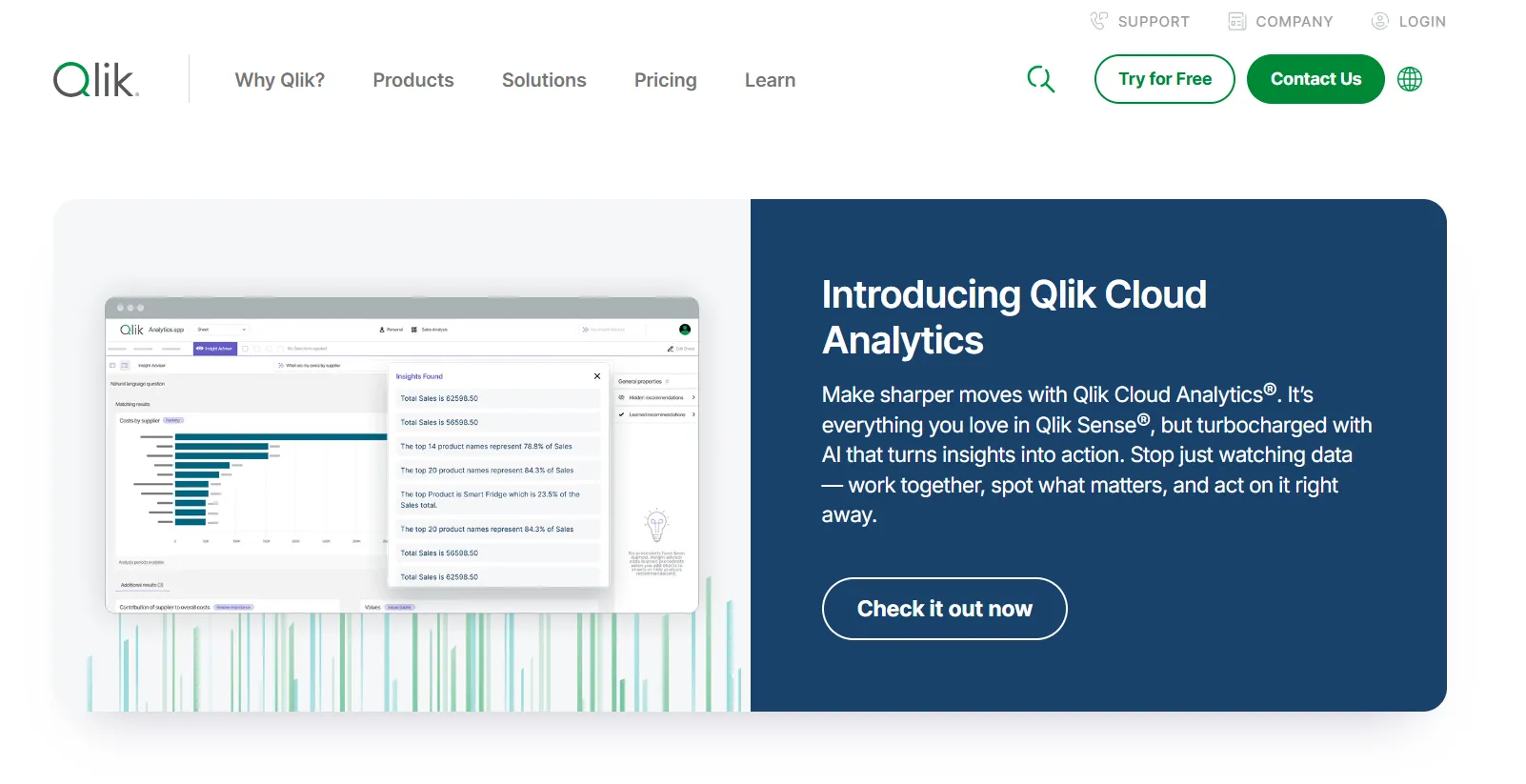 Qlik Sense | Associative analytics engine for exploring complex data relationships with AI-augmented insights and strong governance. | Custom pricing. |