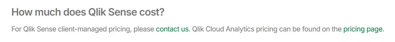 Qlik doesn't publish pricing for Qlik Sense.