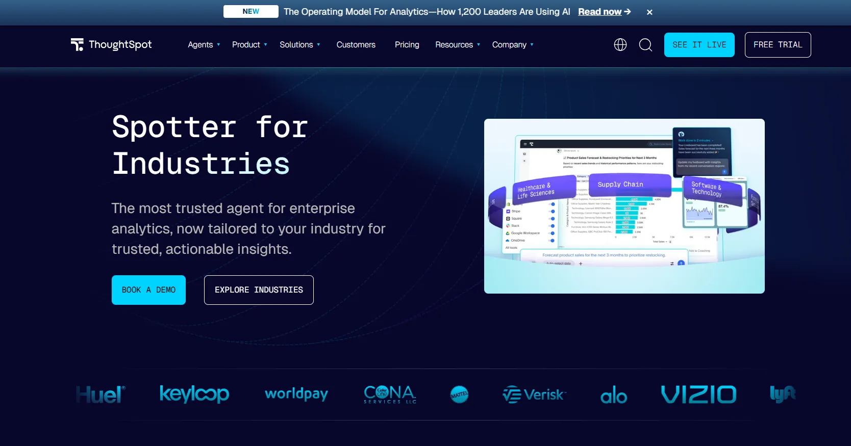 - AI agents for analytics workflows: Agentic tools like Spotter automatically generate analyses, dashboards, and insights from structured and unstructured data.