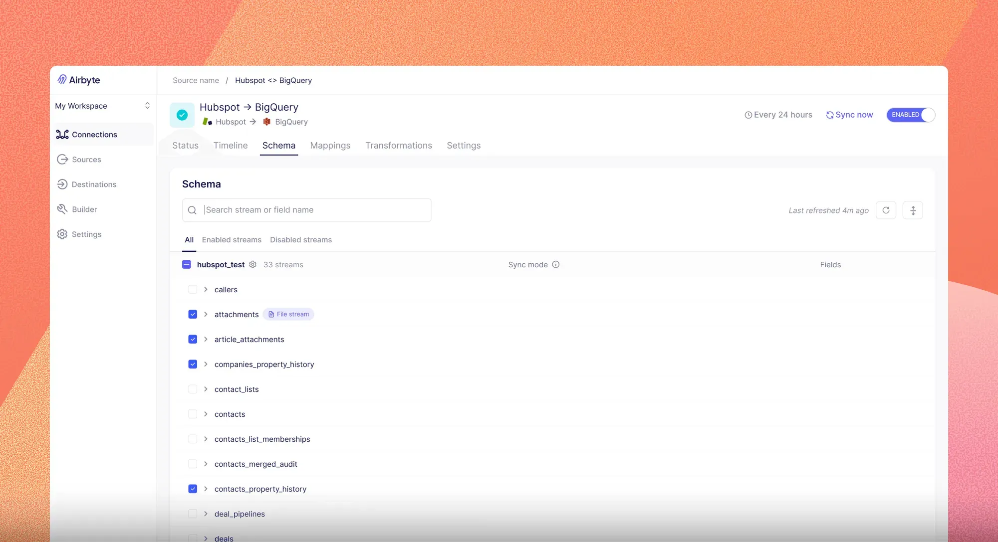 - Flexible deployment: Run Airbyte as a managed cloud service, self-hosted in your own infrastructure, or in a hybrid setup for teams with data residency requirements.