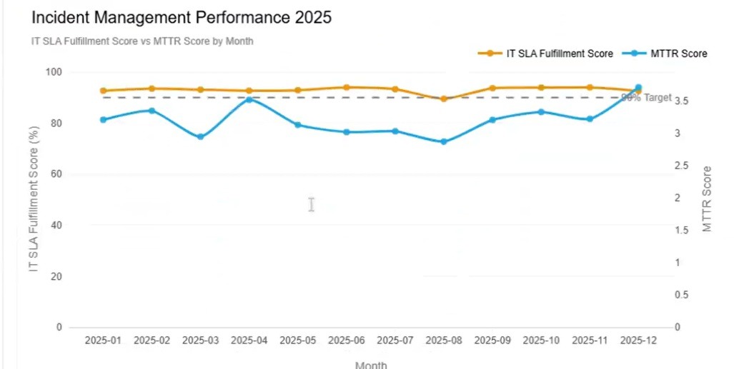 Instead of manually copying charts from a dashboard into slides, the data flows from the semantic model through Dot into a report that leadership can actually act on.